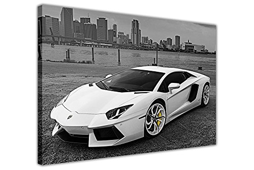 Sport Car: Lamborghini bianca, stampata su tela, tesa e avvolta intorno ad una cornice in legno di pino.