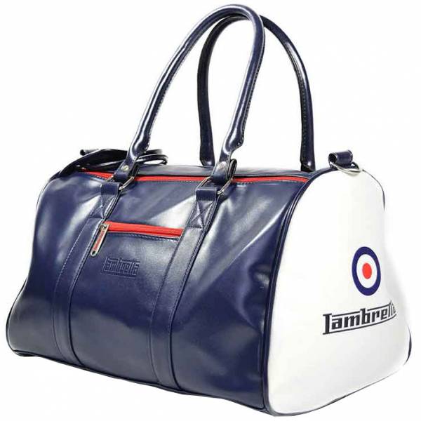 Marca Lambretta Materiale 100% poliuretanica (pelle artificiale) Fodera 100% poliestere Logo del marchio sui lati Dimensioni Altezza 23 x Larghezza 40 x Profondità 25 cm Scomparto principale con cerniera e chiusura a strappo una piccola tasca con zip sul davanti una piccola tasca con cerniera all'interno due maniglie per il trasporto tracolla removibile con i piedi per terra disegno contrastante Borsa da viaggio in stile retrò piacevole comfort NUOVO con etichetta e imballaggio originale
