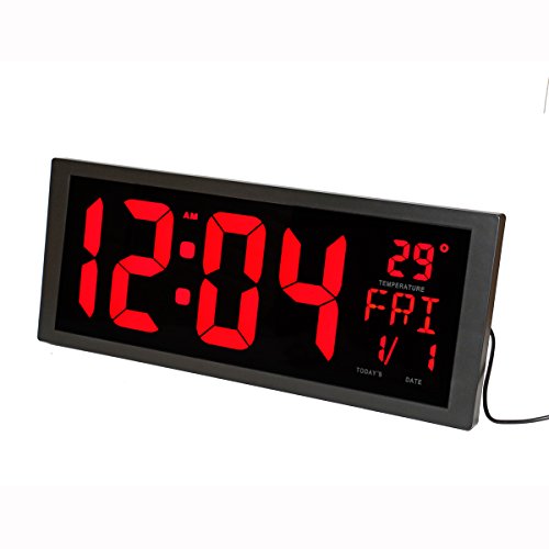 LambTown Ciclo di 12 ore Orologio Digitale a LED da Tavolo o da Parete con Temperatura Interna, Data e Settimana - Rosso