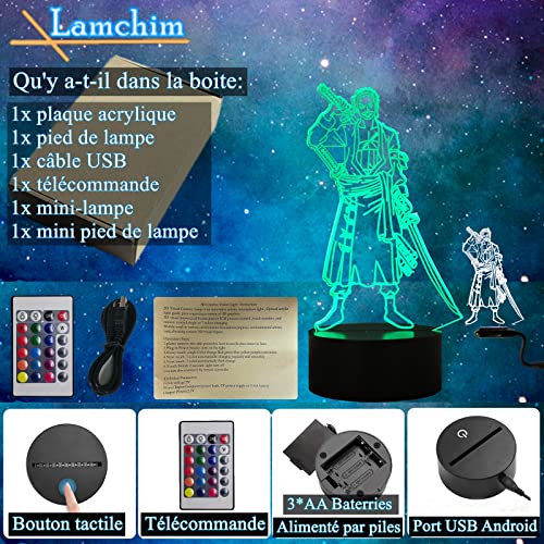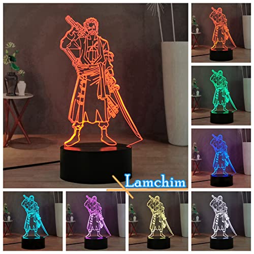 Lamchim - Lampada da notte 3D Roronoa Zoro, statuetta manga lampada da scrivania LED touch usb, lampada da comodino camera bambino 16 colori decorazione luce, manga lampada