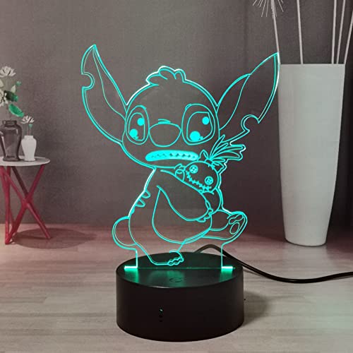 Lamchim - Luce notturna 3D Stitch - Lampada da scrivania LED Stitch con colore regolabile - Decorazione per lampada da notte Stitch USB Touch Camera da letto (Stitch Doll)