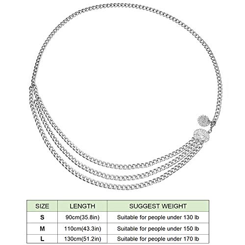 Lamdgbway Cintura in Metallo a Catena Multistrato Per Abito da Donna Argento 130CM