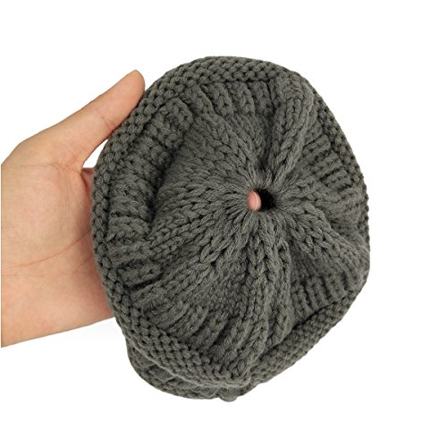 Lamdgbway Donne Maglia Cappello Inverno Beanie Berretti Allungare Coda di Cavallo Berretto Buio Grigio