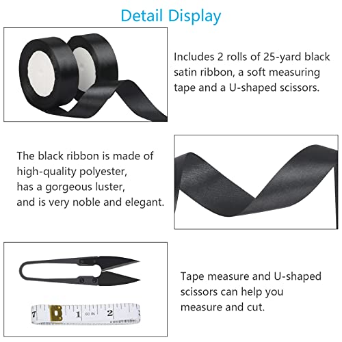 Set di nastri in raso nero da 4 pezzi: il nostro set di nastri neri contiene un totale di 4 articoli, inclusi 2 rotoli di nastro nero da 22 m, una forbice nera a forma di U e un righello flessibile. I nastri da regalo neri con una lunghezza sufficiente possono soddisfare le tue diverse esigenze.
