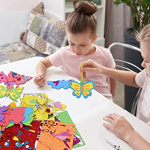 Simpatico set di adesivi a forma di farfalla in EVA: il set di adesivi a forma di farfalla in schiuma contiene un totale di 12 modelli a forma di farfalla, 12 fili colorati e vari adesivi decorativi a forma di farfalla. Lascia che i bambini creino farfalle carine e adorabili!