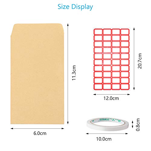 Set di buste kraft piccole super valore: il nostro set di buste kraft mini include 140 pezzi di buste kraft di piccole dimensioni, 4 fogli di etichette e 1 rotolo di nastro biadesivo. Un numero sufficiente di mini sacchetti di carta kraft può soddisfare le tue diverse esigenze.