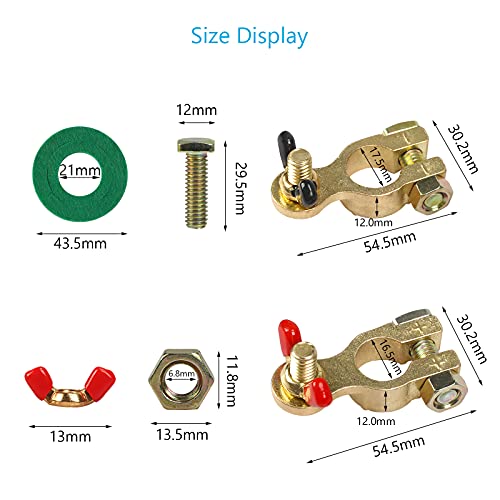 LAMEK Terminale Batteria Auto Morsetti Terminali Batteria Auto 12V/24V Connettore Batteria in Ottone con Dado ad Alette per Auto Moto Barca Camion Veicolo Auto Roulotte Positivo Negativo