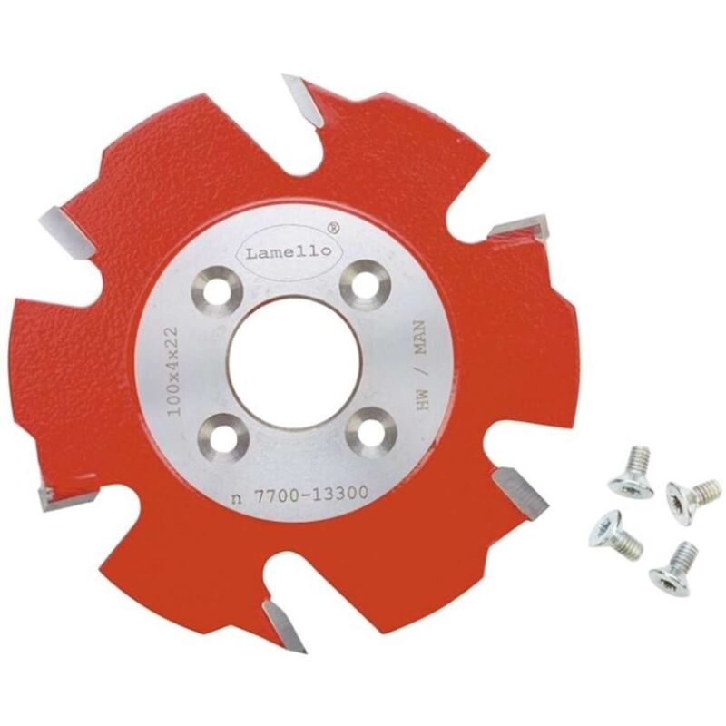 Fresa in HW (Widia) Art. 132000 Ø 100 × 4 × Ø 22mm Z2 + V4 denti rasanti, 4 fori, con ghiera rinforzata per Zeta P2/Top 21/Classic X