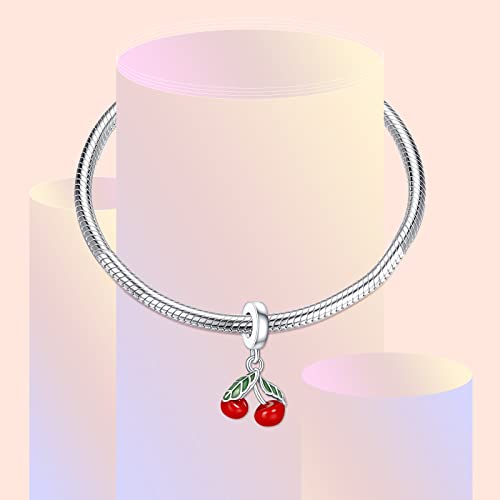 LaMenars Asimmetrico Ciliegia Frutta Ciondola Charm Perline Argento 925 Adatto Bracciali, Halloween Compleanno Gioielli Regali Donne Ragazze