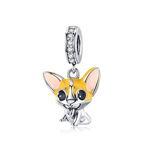 LaMenars - Ciondolo a forma di cane Corgi in argento Sterling 925, compatibile con braccialetti e collane Chamilia e europei
