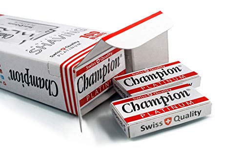 1 ANNO di rasatura ad un prezzo imbattibile 100 Lame Champion Platinum per rasoio di sicurezza realizzate secondo i più alti standard di qualità Svizzera