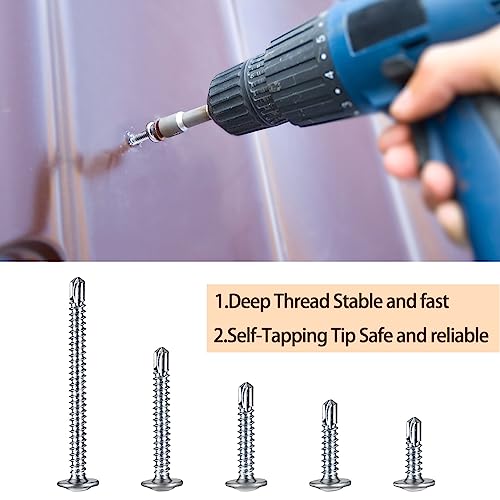 Viti per Lamiera Autofilettanti, 185 Pz. Viti Autoperforanti in Acciaio Inossidabile, Set di Viti Autoperforanti, M4,2x(13mm/19mm/25mm/31mm/50mm)