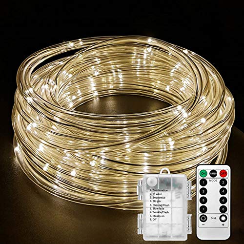 Lamker Tubo Lucine Decorative a Batteria Interno/Esterno 10M 100LED Stringa Luci con Telecomando Timer Impermeabile Bianco Caldo Illuminazione Catene Luminose per Matrimonio Natale Camere Giardino