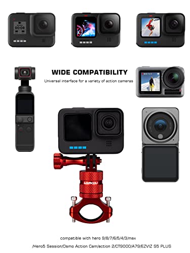 ✪ 【 Super qualità 】 Supporto per fotocamera da bicicletta con lega di alluminio CNC di alta qualità. Impermeabile, antiruggine, anticorrosione e durevole. La struttura robusta impedisce scivolamenti e rotture e riduce al minimo le vibrazioni e le oscillazioni della fotocamera