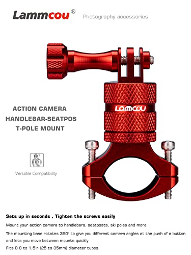 Lammcou supporto per bici per action camera, supporto per manubrio in alluminio per mountain bike, compatibile con Hero 9 8 7 6 session hero + 4K Yi Osmo Action Camera Bike Mount