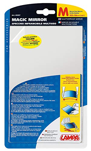Specchio magico multiuso. Alta riflettenza infrangibile, flessibile, sagomabile. Prodotto interamente in plastica antiurto. Fornito con biadesivo