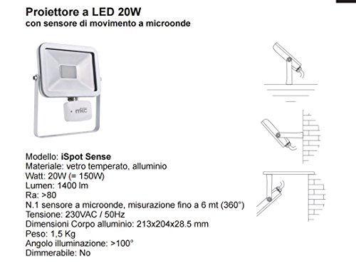 MKC Lampada a LED 3200K con Sensore Microonde Ip65 da Esterno Sense, Bianco