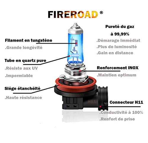 Les ampoules FIREROAD effet xenon SUPER WHITE sont en quartz pour une résistance accrue. Le nostre lampadine sono stampate a caldo per dare loro forma così particolare.