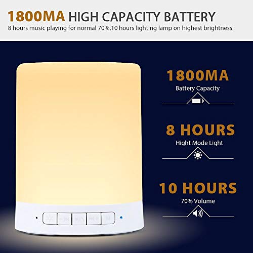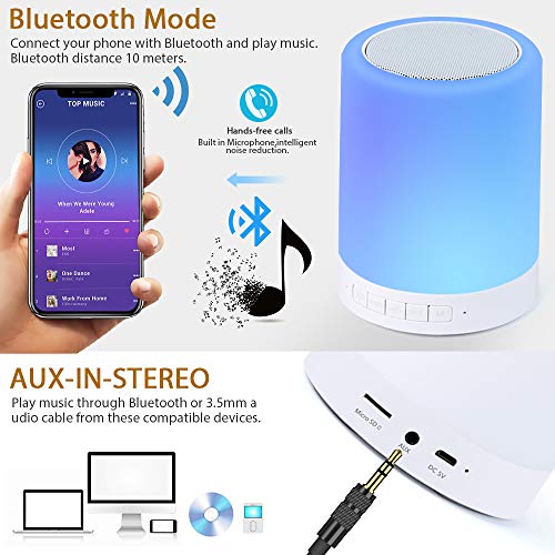 Lampada 4 in 1 Speaker: Lampada da tavolo con controllo tattile, altoparlante Bluetooth con Hifi 4.2 lettore di musica senza fili, altoparlante vivavoce, luce notturna per bambini. Questa graziosa lampada supporta anche il micro SD, l'ingresso e l'ingresso AUX e il lettore flash. Adatto per le attività di f te, camera da letto e all'aperto, i tablet e la maggior parte dei dispositivi Bluetooth a 10 metri.
