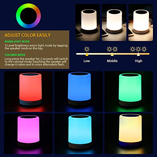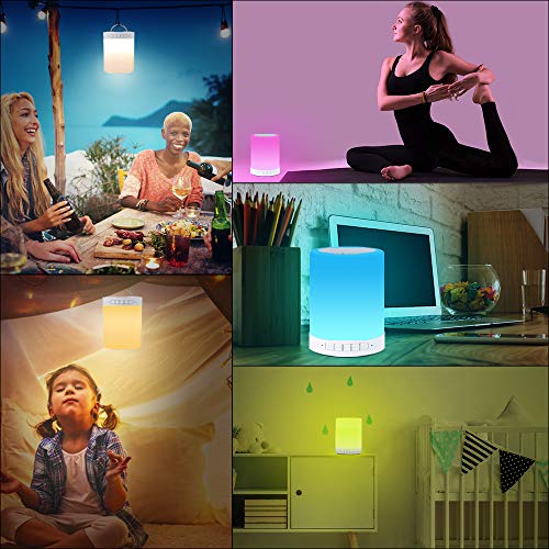 Lampada Dell'altoparlante Bluetooth, Lampada da Comodino con Luce Notturna a Sensore Tattile, Luce Calda Dimmerabile e Lanterna da Campeggio Esterna Portatile a 7 colori, Regali per Donne Bambini