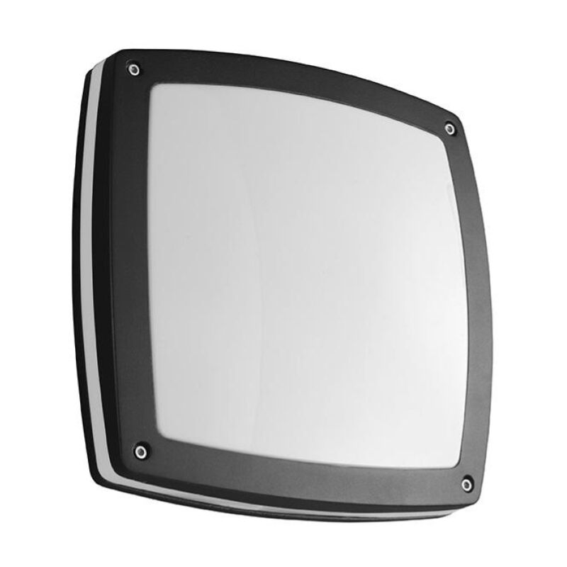 Lampada da parete per esterno PARIS realizzata interamente in alluminio verniciato con diffusore in policarbonato. Un applique dalle linee semplici e moderne, perfetta per illuminare qualsiasi tipo di ambiente esterno. Il grado IP54 garantisce ottima protezione da polvere e schizzi d'acqua. CARATTERISTICHE Colore: Nero Materiale: Alluminio con diffusore in policarbonato Tipologia: Applique Altezza: 30 cm Larghezza: 30 cm Profondita': 9 cm Dimmerabile: NO Illuminazione: 2 x E27 (L'attacco E27 permette di installare lampadine a LED, fluorescenti o alogene non incluse) Input: 220-230V Grado di protezione: IP54 (Il grado IP54 protegge da polvere e schizzi d'acqua che provengono da qualsiasi direzione) Lampadine non incluse