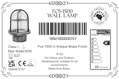 Fos 10W LED Lampada applique da parete da muro costruire dall' ottone per esterni o per interni illuminazione per marina, nautica barca vintage retrò leggero luce LED