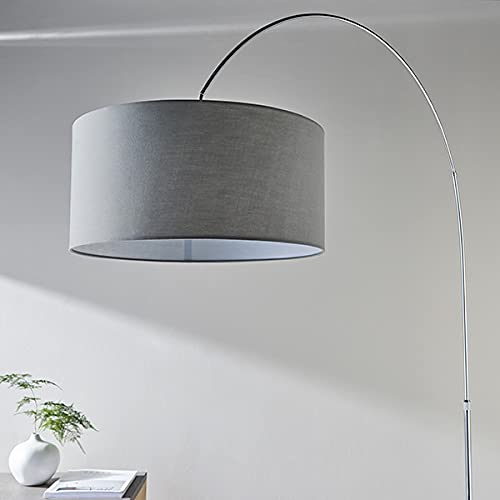 Lampada Owen Arched Cilindder in acciaio, piastra cromata e tessuto grigio