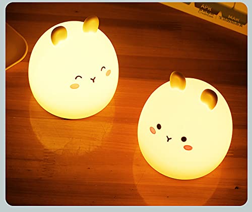 Lampada per bambini con luce notturna a forma di coniglietto carino, luci portatili in silicone per animali a LED, luci notturne caricabili USB per cameretta comodino Kawaii Room Decor Regali