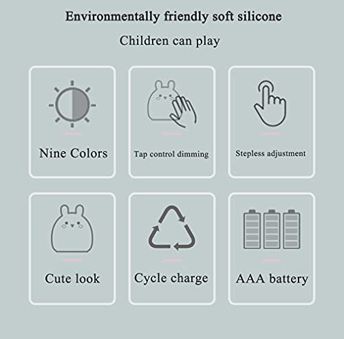 【Multicolore e controllo del rubinetto】 Graziosa luce da comodino a forma di coniglio in silicone a 9 colori, il sensore di vibrazione della base si attiverà per cambiare i colori della luce quando si tocca la superficie in morbido silicone.