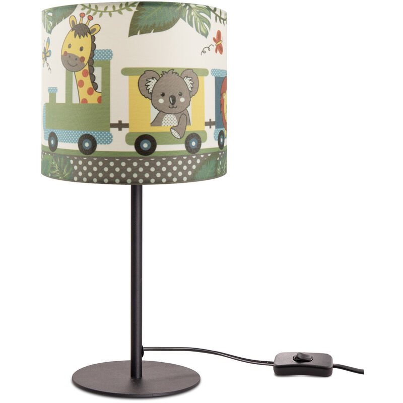 LA LAMPADA: ciuf ciuf! Con questa simpatica lampada da tavolo, allegria e divertimento si fanno strada nella camera dei bambini. L'allegra lampada colpisce per il meraviglioso paralume sul quale i sei amici animali viaggiano sulla loro ferrovia attraverso la verde giungla. Gli animali di colore diverso, dal leone e dall'ippopotamo alla giraffa, al koala, fino alla zebra e all'elefante, mostrano che l'amicizia non conosce confini ed emana una luce caleidoscopica. La lampada stessa è disponibile in bianco o nero ed è estremamente stabile e sicura grazie alla base: è perfetta per la camera dei bambini! Consigliamo le nostre lampadine a LED per contenere il consumo energetico e risparmiare sui costi. Le sorgenti di luce a LED sono molto più durature ed efficienti sotto il profilo energetico rispetto alle lampadine a incandescenza e alogene. La lampada si assembla molto facilmente, quindi basta montare il paralume e il gioco è fatto! UN DESIGN BEN IN EVIDENZA: un viaggio in treno verso
