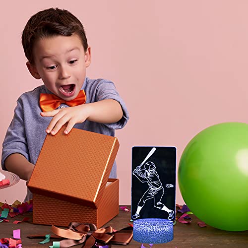 Lampada da baseball 3D per bambini, Touch & Remote Control, decorazione della stanza, regalo di compleanno per ragazzi amanti dello sport bambini adolescenti