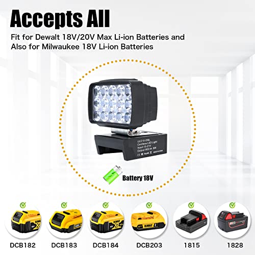Luce da lavoro a LED senza fili: funziona con batterie Milwaukee 14,4 V-18 V/Dewalt 14,V-20 V MAX agli ioni di litio come 48-11-1840, 48-11- 1841, 48-11 1850, 48-11-1852, 48-59-12, 48-59. -1850 ecc. & DCB180, DCB181, DCB182, DCB184, DCB201, DCB201-2, DCB200 (non incluso). È importante se non avete accesso all'elettricità