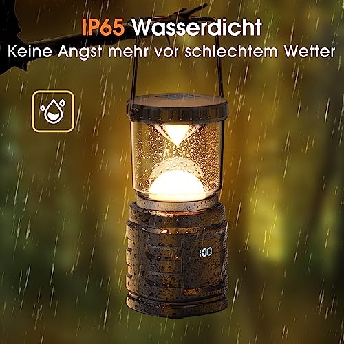 【Impermeabile IP65】Il grado di protezione IP65 significa che questa lanterna è protetta dagli spruzzi d'acqua da ogni angolazione. La lanterna da campeggio è ideale per il campeggio all'aperto, l'escursionismo, la pesca e l'illuminazione di emergenza in caso di interruzione di corrente.