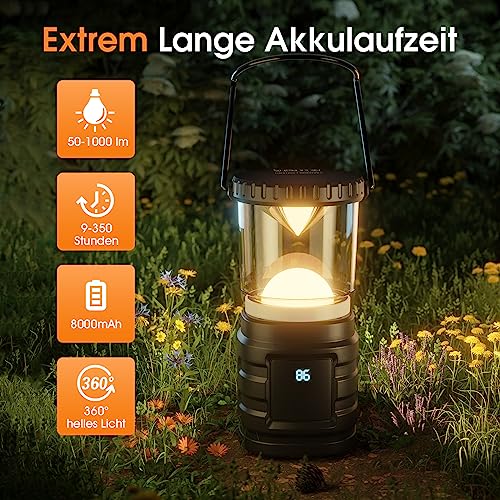 Lampada da Campeggio 8000mAh Batteria Super Luminosa 1000 Lumen Lampade da Campeggio Ricaricabili 4 Modalità di Llluminazione per il Campeggio, l'escursionismo