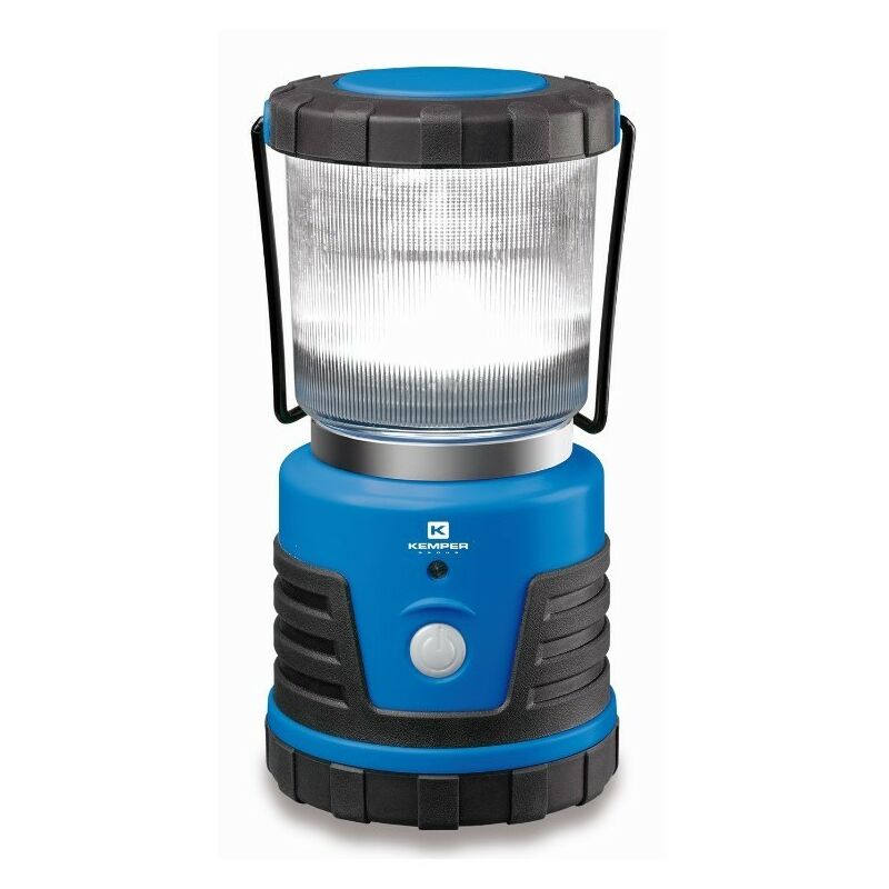Lampada da campeggio a Led a batteria (3xD) con maniglia e gancio alla base. Resistente all'acqua (IP54) e alle cadute da 1 mt. Luce bianca e luce rossa per allarme visuale SOS in situazione di emergenza. Dimensioni: Larghezza 10.50 cm Altezza 19.50 cm Profondità 10.50 cm Peso 0.48 kg