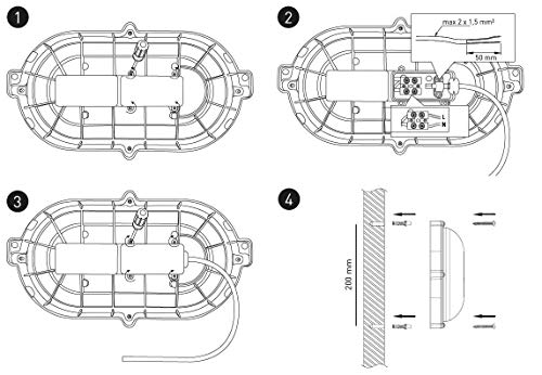 Installazione facile | Sia come montaggio o installazione, come lampada da soffitto o da parete - Fissaggio con le due viti in dotazione.