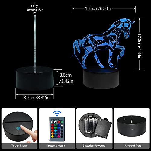 Lampada 3D Cavallo Illusione Ottica Luce Notturna, Lampade da Tavolo Luci Notte Luce decorazioni da Comodino con 16 Colori e Telecomando, Regalo per Cameretta dei Bambini