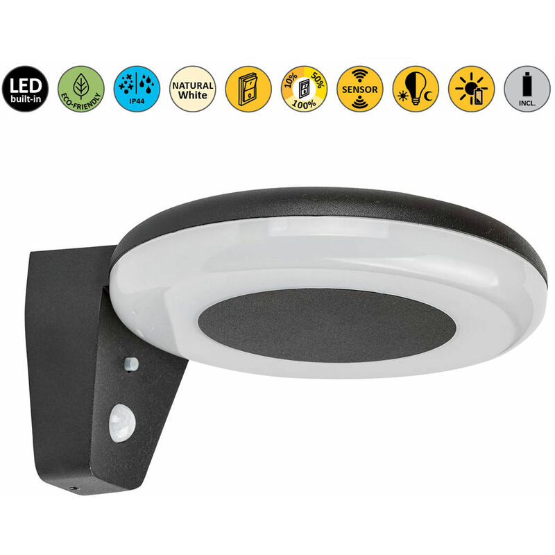 Certovo LED nero LED 4W IP44 4000K B: 22 cm H: 10 cm Ø18,5 cm 3 livelli Dimmable Dimensioni in mm: Larghezza: 220, altezza: 100, diametro: 185 Peso in kg: 0,66 Tipo di agente luminato/versione: LED Medium luminato incluso: Sì Prestazioni massime in watt: 4w Colore della luce in Kelvin: 4000k Colore della luce: Neutralweiß flusso di luce in lume: 360 Classe di protezione: IP44 Dimmbar: Sì: Sì Sensore: Sì Colore abitativo: Schwarz Materiale vetro/picchi: Plastica Colore vetro/ombrello: bianco Informazioni aggiuntive: 3 livelli dimmerabili;