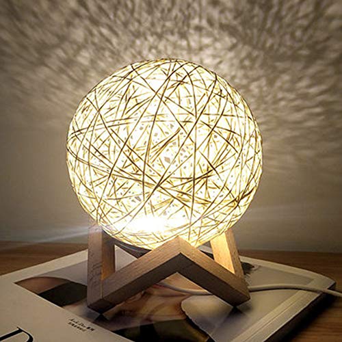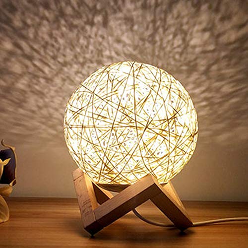 Lampada chiara creativa LED Night con paralume Tessuti a mano in legno Camera decorativo Lampada da comodino (Giallo, Interruttore a Pulsante)
