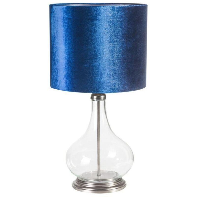 Lampada da terra decorativa, con paralume in velluto larghezza: 32 cm, lunghezza: 61 cm, colore: blu navy, Composizione: lampada: ferro, vetro;