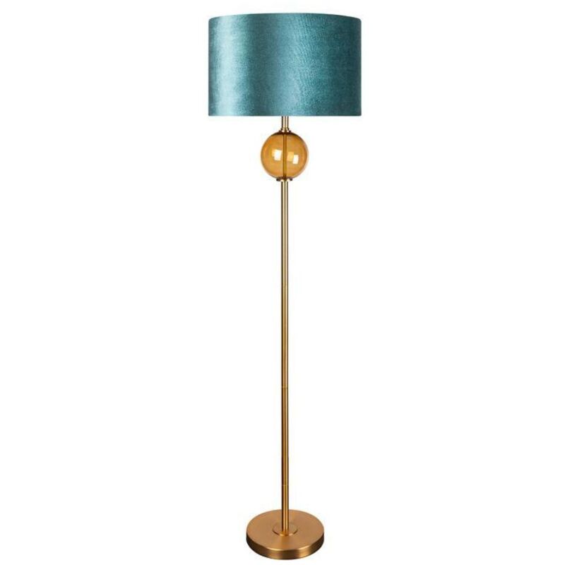 Lampada decorativa da terra, con paralume in velluto larghezza: 46 cm, lunghezza: 165 cm, colore: turchese, Composizione: lampada: ferro, vetro;