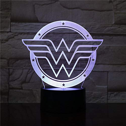 Lampada da comodino Bluetooth Lampada 3D Illusion Luce notturna a LED Wonder Woman Logo Sensore tattile 7 colori con telecomando per regalo di Natale per interni