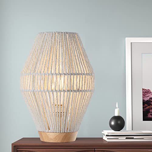 Lampada da comodino a LED E27, per cameretta dei bambini, colore bianco, stile boho, con filo di carta, paralume per lampada da tavolo in naturale, vintage, per camera da letto, soggiorno.
