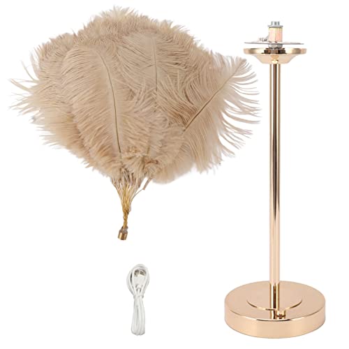 Lampada da Comodino Decorativa, Lampada da Tavolo Moderna in Piuma per Camera da Letto Cafe 3 Colori Base in Metallo (Marrone chiaro)