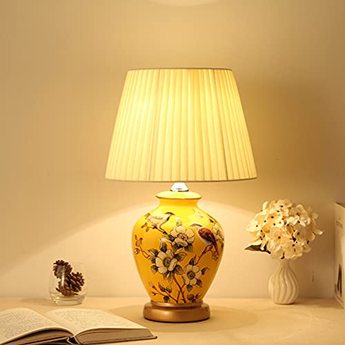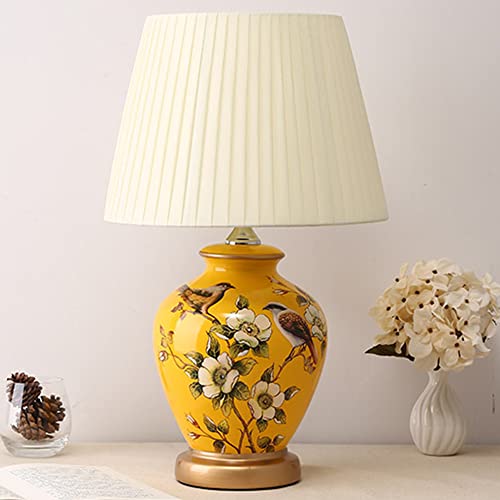 Lampada da Comodino, Moderna Lampada da Tavolo Base in Ceramica Paralume in Stoffa, Attacco E27, 31 * 31 * 51cm, Design Vintage.(giallo)