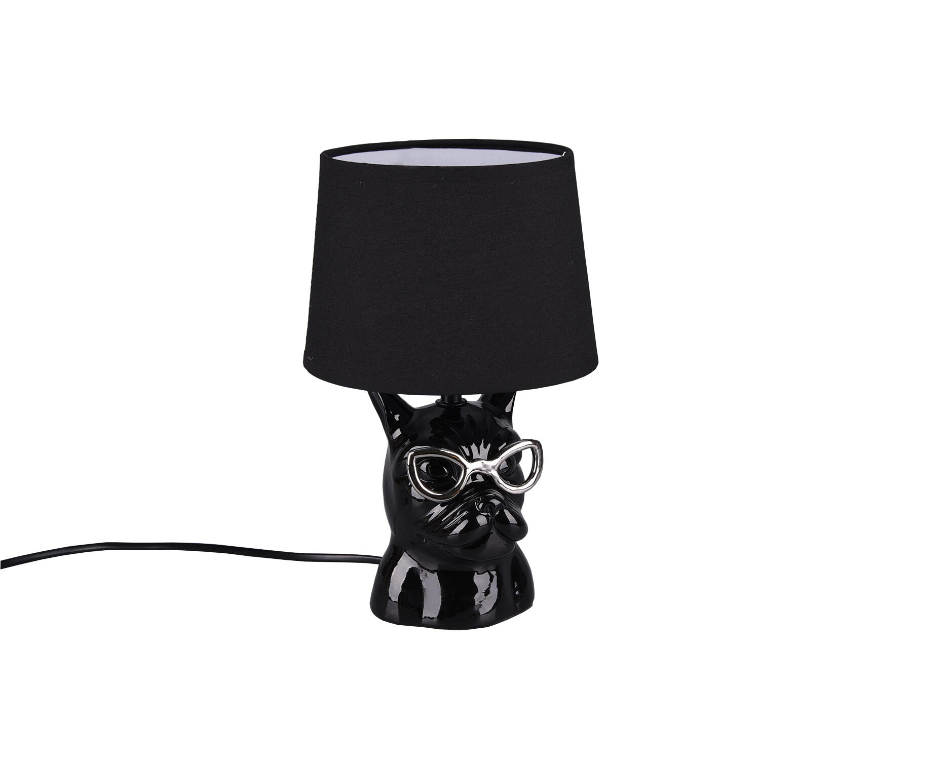 Lampada da tavolo Ceramica colore nero a forma di cane Bulldog con simpatici occhiali da vista e paralume in tessuto nero.Altezza 29 cm, adatta per ambienti vintage/moderni. Adattabilità ad ambienti moderni, camerette, ambienti Vintage. Colore Vivace