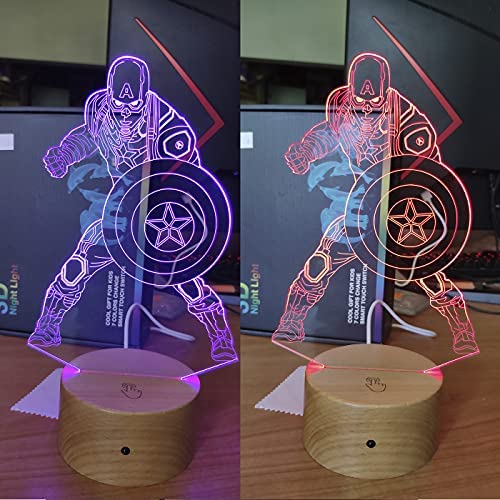 Lampada da comodino da notte - Modello 2021 realizzata in legno - LED con la tua forma preferita, lampada per bambini, decorazione - Regalo per bambini capitan america