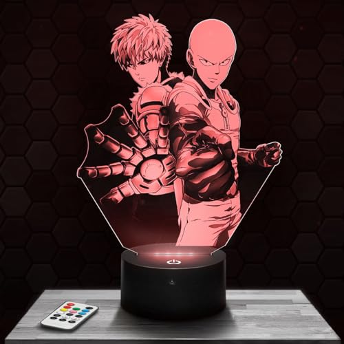 Lampada da comodino, Luce notturna tattile Manga - Genos - Saitama Lampada illusione 3D LED, idea regalo di Natale per ragazzi e ragazze Lampada da notte per bambini o adulti