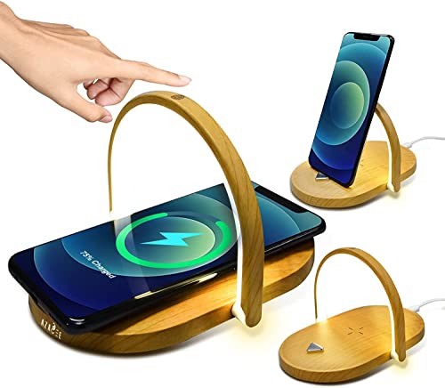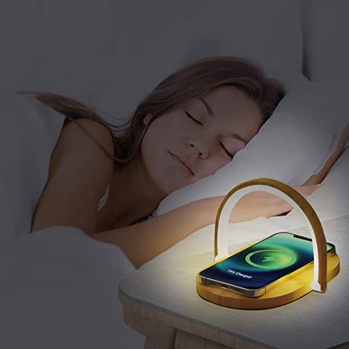 Lampada da Comodino con Ricarica Wireless 15W Lampada da Scrivania Tavolo LED, Camera da Letto Regolabile 3 Livelli Luminosità Supporto per Telefono Girevole, Luce Notturna da Letto Soggiorno Ufficio