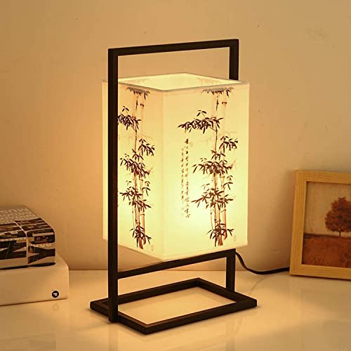 ZHTD Lampada da comodino con struttura in metallo nero da camera da letto colore caldo con paralume in tessuto cubo da notte giapponese